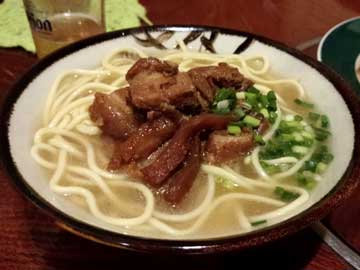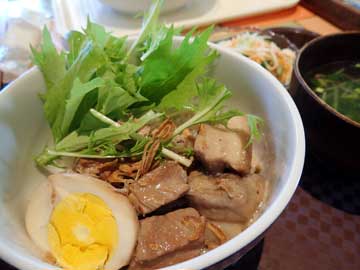 - 崎枝にあるベトナム料理店、石垣商店。町中から車で30分・・・内地の感覚ならなんてことない移動距離ですが、石垣に住んでると遠いです。それでも!無性に食べに行きたくなってしまうのが、石垣商店です。フォーは県産鶏と美崎牛の2種類。写真は県産鶏です。ランチセットには、春巻きとドリンクがつくのですが、この揚げ春巻きが旨い!皮がパリパリっとしていて、甘酸っぱいタレも美味しくて・・・。ほんのりと八角が香る、塩味の角煮丼(下の写真)とか、美崎牛の牛すじカレー、島魚のグリーンカレーも美味です♪