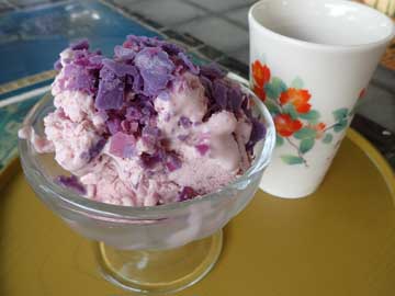 - 「こんなに美味しいアイス、初めて食べた!」ご案内したお客様や友人が、みな口をそろえます。マンゴーアイス(写真2枚目)、パイナップルシャーベット(写真3枚目)も美味。そして、紫芋のスィートポテト(写真4枚目)が、これまた最高なんです。もちろんカットパイン(200円)も美味しいですよ~!