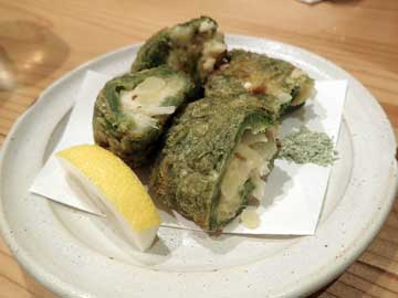 - ポテサラのアーサ包み焼きもおすすめ。ポテトサラダを、アーサ(アオサ)の衣でくるんで揚げた一品です。定番メニューではないので、あしからず。